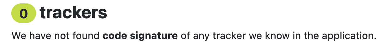 The application is verified by Exodus Privacy Project: