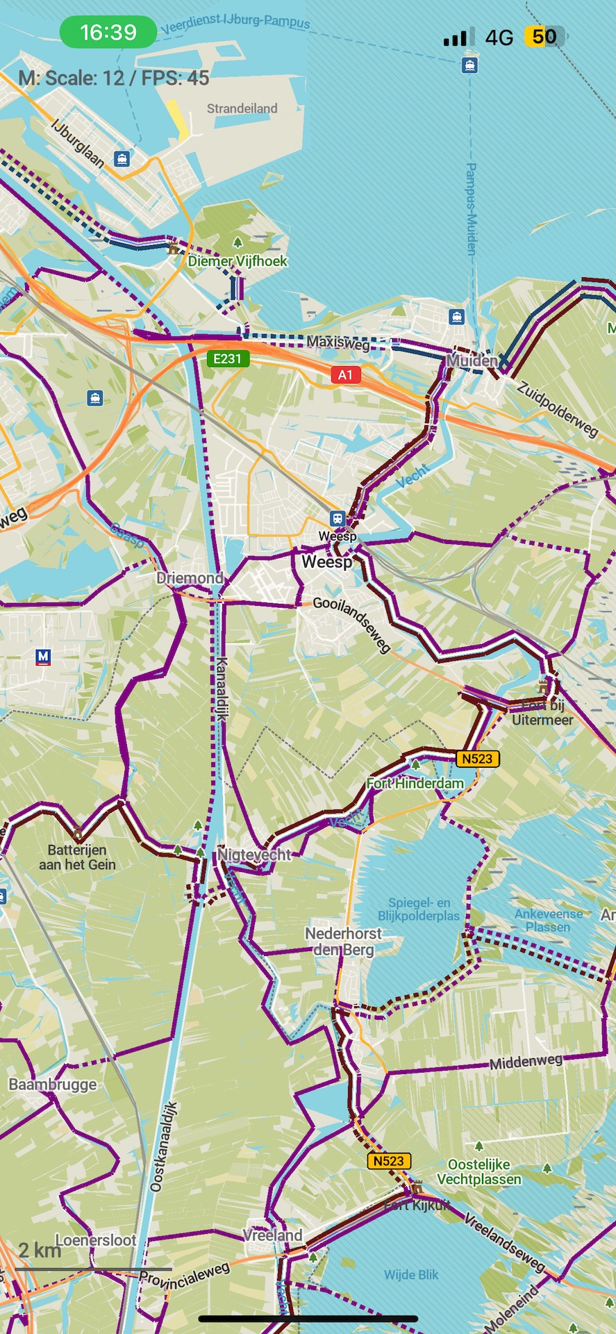 • హైకింగ్ మరియు సైక్లింగ్ మార్గాలు (ఎడమపై Layers బటన్ ద్వారా ఎనేబుల్ చేయండి)